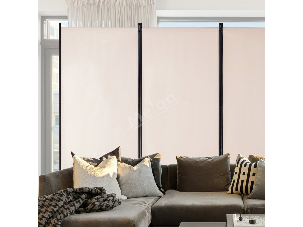 Paraván 3 panely, skládací a přenosný, samonosný, béžový, do ložnice