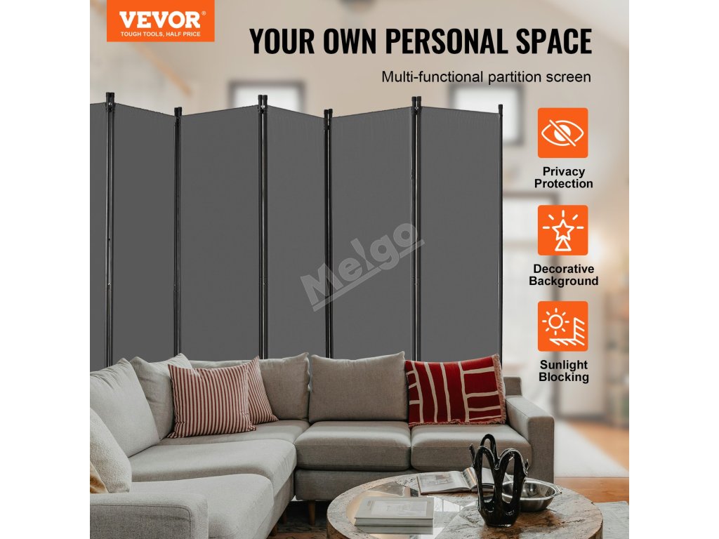 Tento panel pro rozdělení místností slouží k oddělení prostor v obývacích pokojích, kancelářích, školách, restauracích nebo k blokování silného slunečního světla. Může také sloužit jako stylové pozadí pro živé vysílání nebo práci z domova.