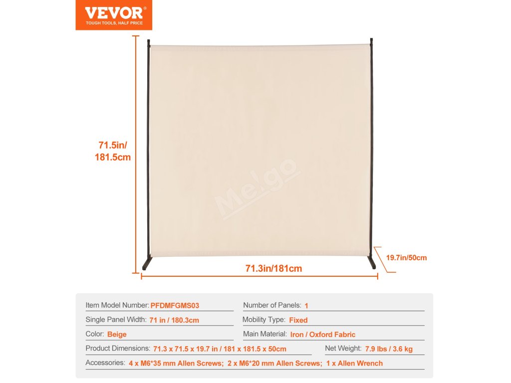 Paraván jednopanelový 6FT, volně stojící, do kanceláře, béžový