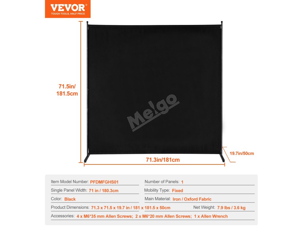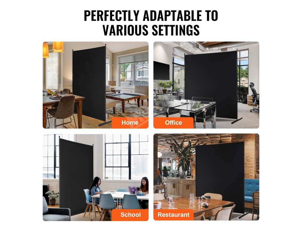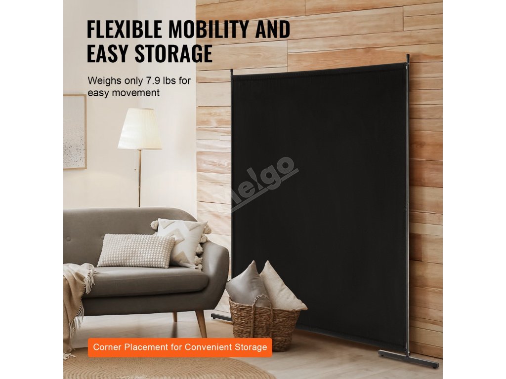 Paraván jednopanelový 6FT stojací černý do kanceláře a ložnice