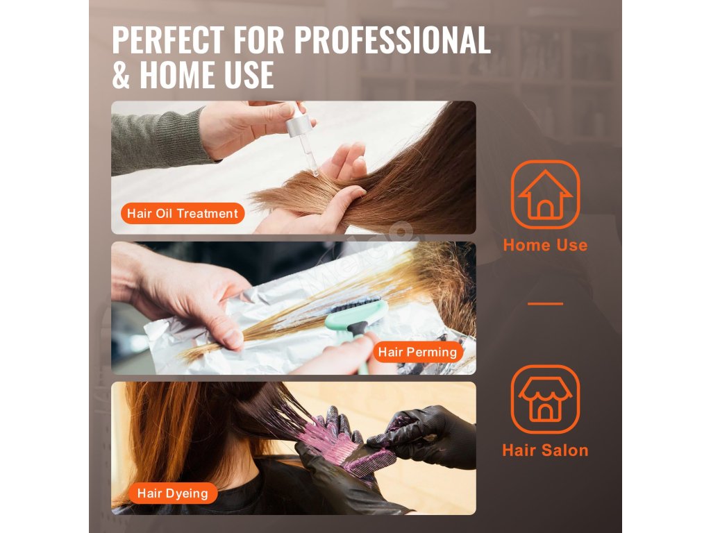 Profesionální napařovač vlasů VEVOR pro hloubkovou úpravu je ideální pro profesionální salony i domácí péči o vlasy. Od olejového kondicionéru až po trvalou ondulaci a barvení dosáhnete výsledků jako v salonu v pohodlí svého domova.