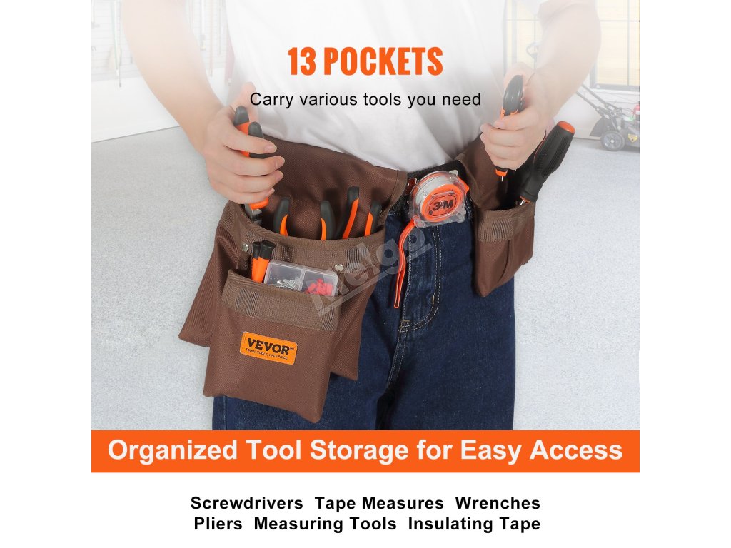 Naše pouzdro na opasek s nářadím nabízí 13 kapes, které jsou dokonalým řešením pro organizaci. Je jako orchestr pro vaše nářadí - šroubováky, klíče, kleště - vše je připraveno na váš povel.