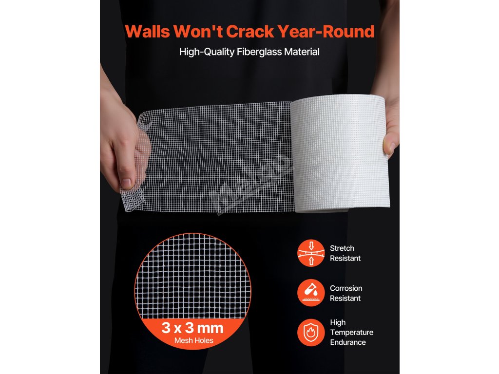 Táto páska na sadrokartónové dosky ľahko opraví veľké praskliny. Je vyrobená z vysokokvalitných sklených vlákien a ponúka vynikajúcu pevnosť v ťahu, aby účinne zabránila praskaniu stien. Silný samolepiaci podklad zabezpečuje pevné pripevnenie bez ľahkého odlepenia.