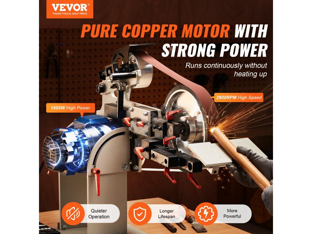 Tato stolní bruska s proměnlivými otáčkami, 1500W motorem z čisté mědi, vysokými otáčkami 2900 ot/min, 3 režimy broušení a kvalitními pásy 72*2 palce poskytuje výjimečný výkon a odolnost. Pojme brusné pásy o rozměrech 72" - 82" x 2" pro hladké leštění, odstraňování rzi, odstraňování otřepů pro jemnější výsledky.