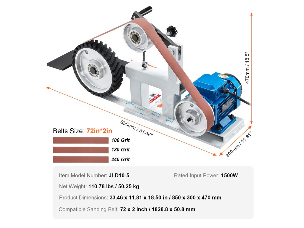 Pásová bruska 72×2-inch, 1500w (2hp), variabilní rychlost vfd