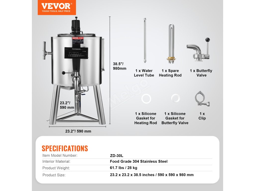 Pasteurizátor mléka 30L, nerez 304, časová a teplotní regulace