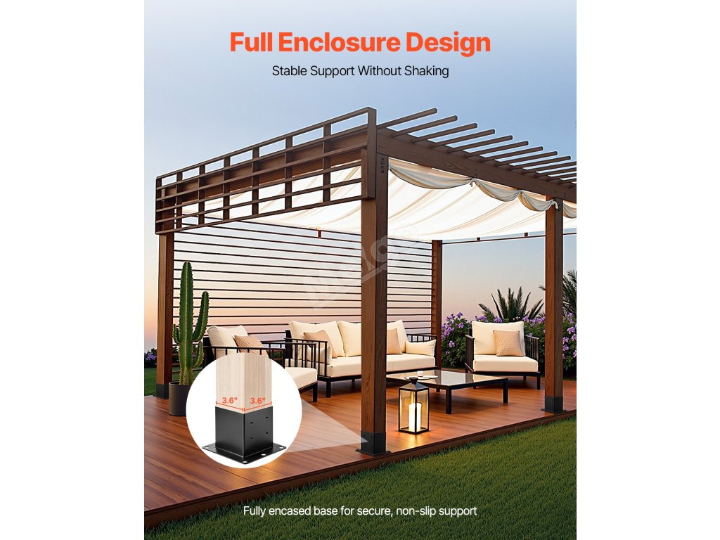 Tato základna pro sloupky paluby je ideální pro pevné instalace pergol, zábradlí verand a dalších instalací a poskytuje spolehlivou bezpečnostní ochranu.