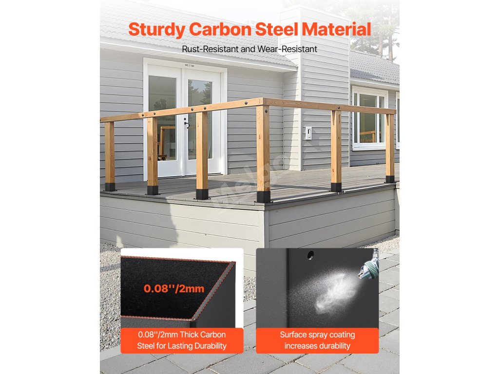 Tato sloupková kotva je vyrobena z pevné uhlíkové oceli s práškovou povrchovou úpravou, která zajišťuje odolnost proti opotřebení a ochranu proti korozi pro dlouhodobé používání.