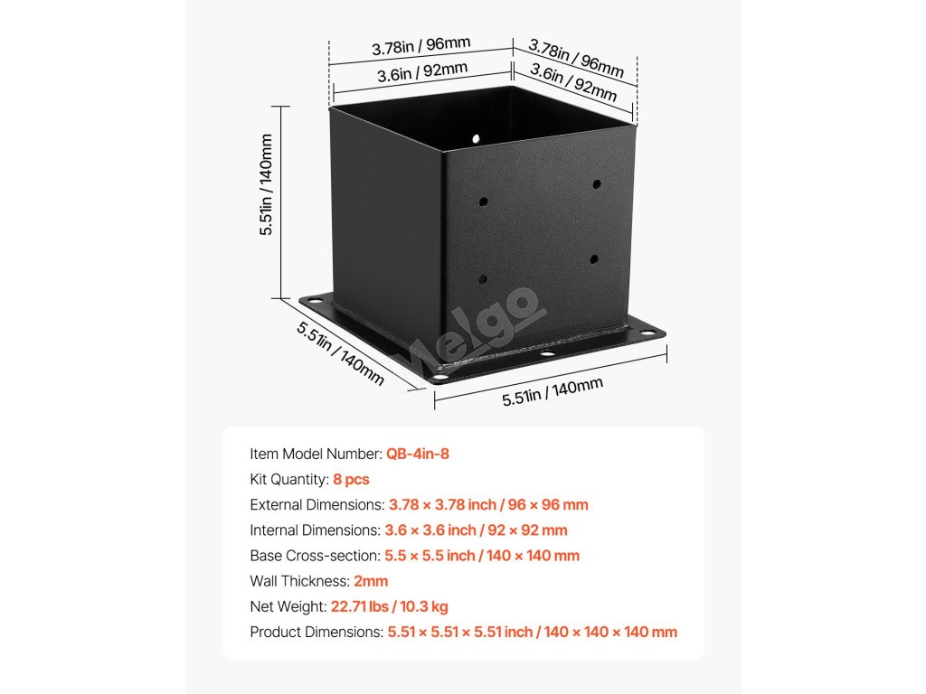 Patka na sloupek 8 ks 3.6×3.6 inch / 92×92 mm uhlíková ocel černá