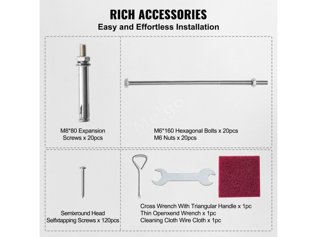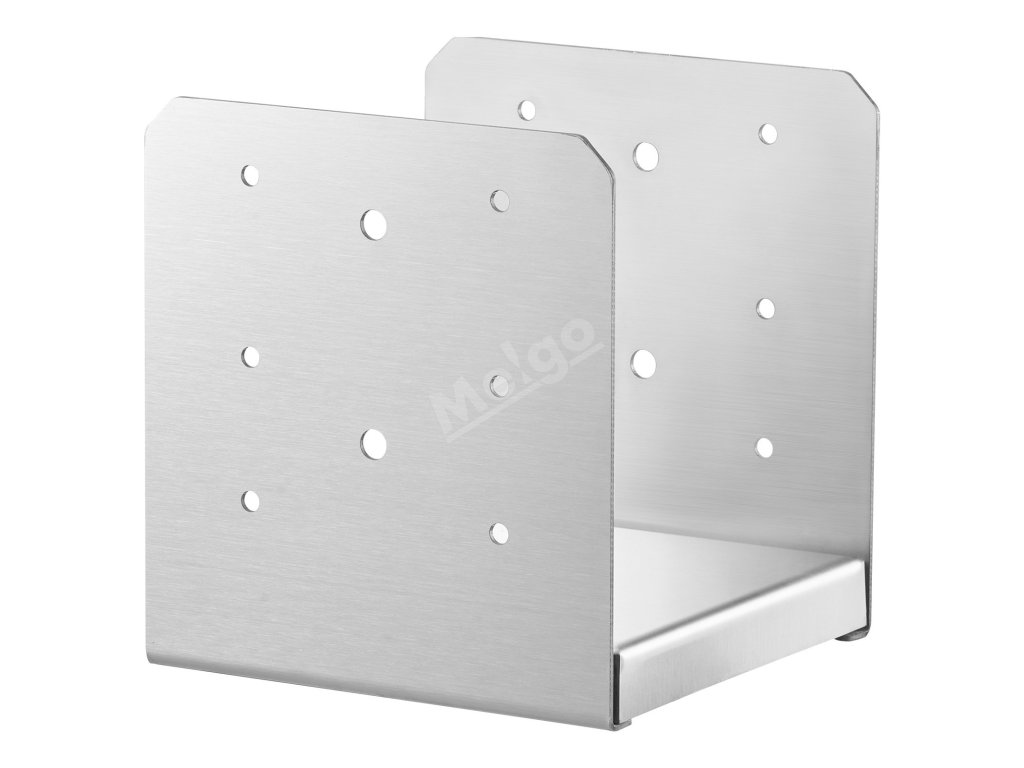 Vyrobeno z robustní nerezové oceli pro dlouhou životnost, odolnost proti korozi a stabilitu. Obsahuje silnou spodní krycí desku, která zabraňuje hnilobě dřeva. Dodává se s různým příslušenstvím pro snadnou instalaci na různé povrchy.
