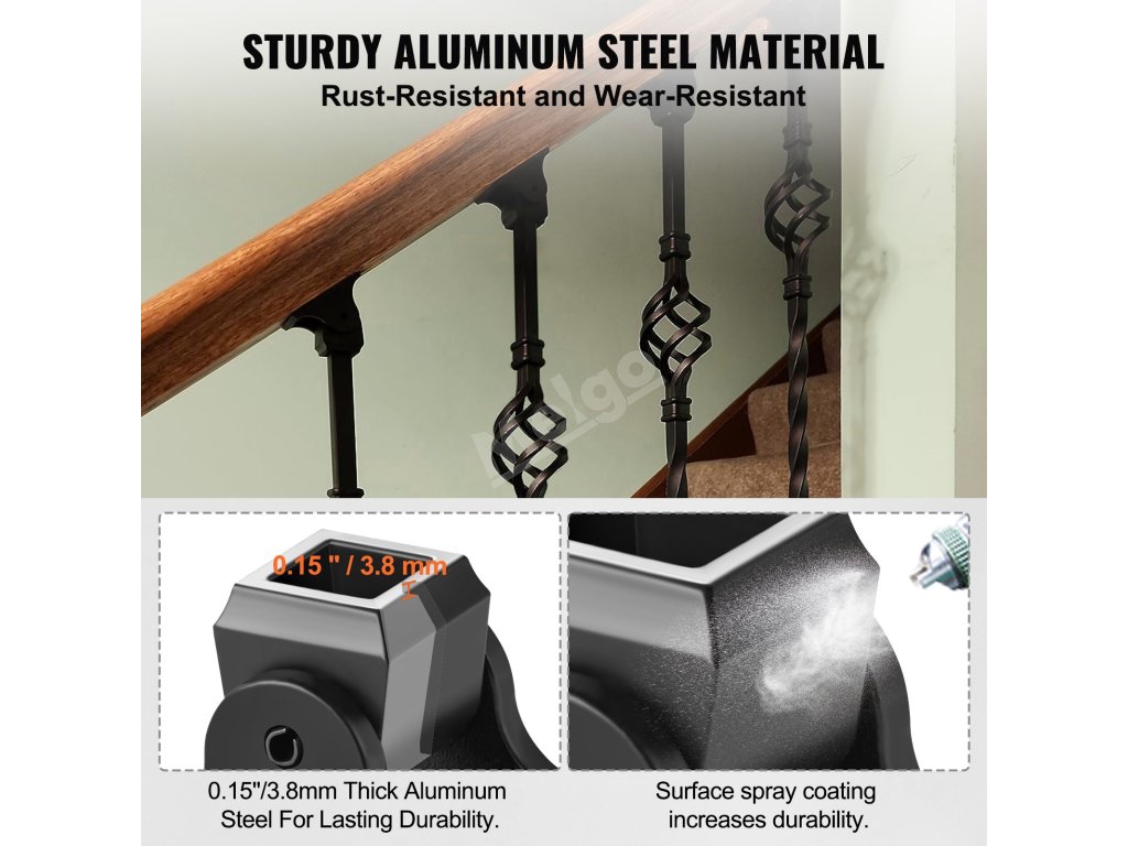Tyto boty na zábradlí jsou vyrobeny z robustní hliníkové slitiny s povrchovou úpravou nástřikem, která zajišťuje odolnost proti opotřebení a korozi a má dlouhou životnost.