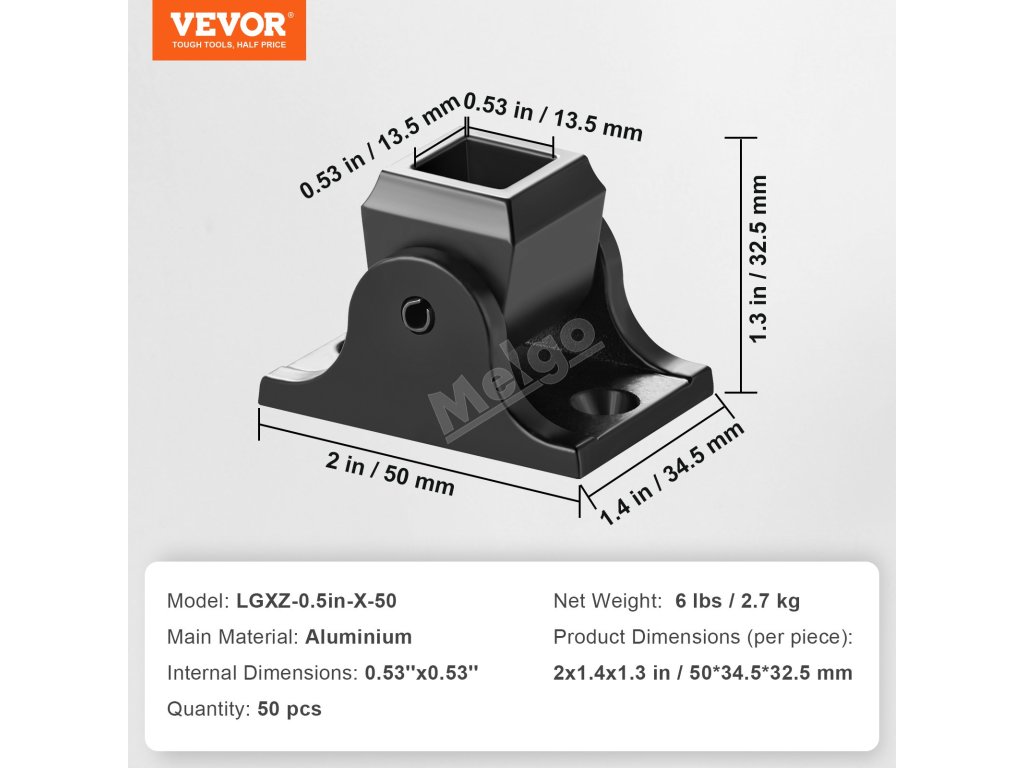 Patky na balustre hliníkové čtvercové se otvory 1/2 Inch černé 50 ks
