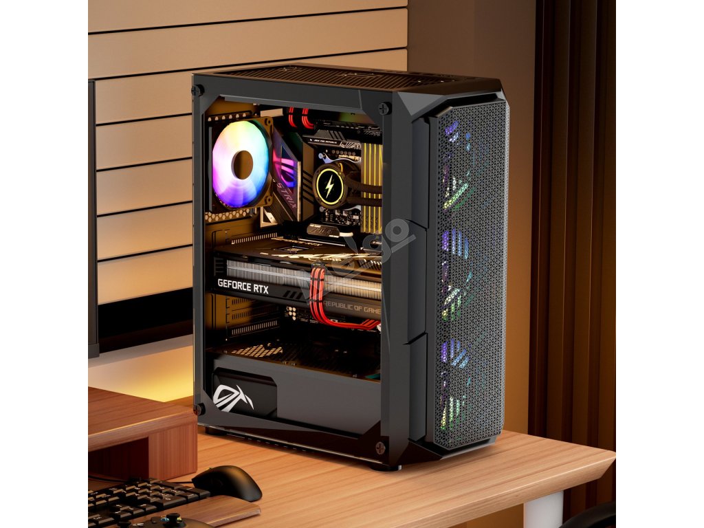 Tato skříň je vybavena 4 x 120mm ventilátory ARGB, které poskytují vynikající chladicí výkon a zároveň vytvářejí pohlcující herní atmosféru s živými světelnými efekty. Je vyrobena z oceli SPCC a tvrzeného skla, je kompatibilní se základními deskami ATX a podporuje až 4 pevné disky.