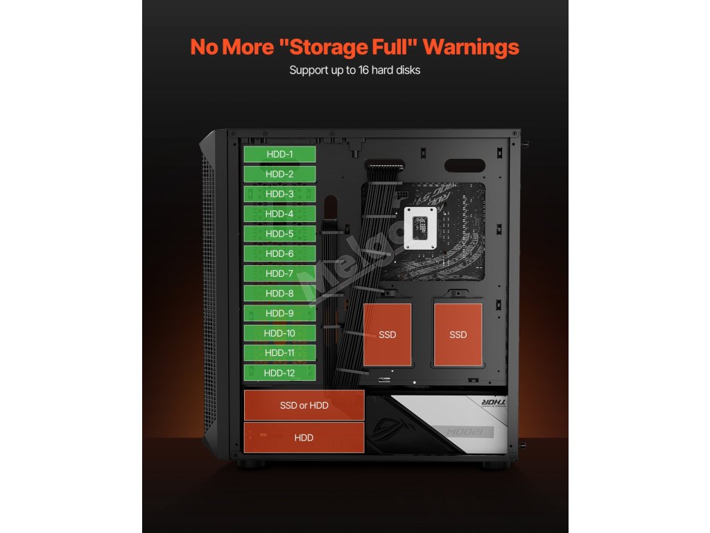Tato skříň je kompatibilní se základními deskami ATX a podporuje až 16 pevných disků pro střih videa, 3D modelování a tvorbu animací. Tato skříň je předinstalována se 4 x 120mm ventilátory a umožňuje instalaci dalších ventilátorů až do 7 x 120mm ventilátorů nebo 5 x 140mm ventilátorů + 1 x 120mm ventilátor.