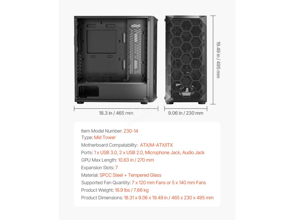 230-14 Počítačová skříň typu Mid Tower, určená pro výrobce