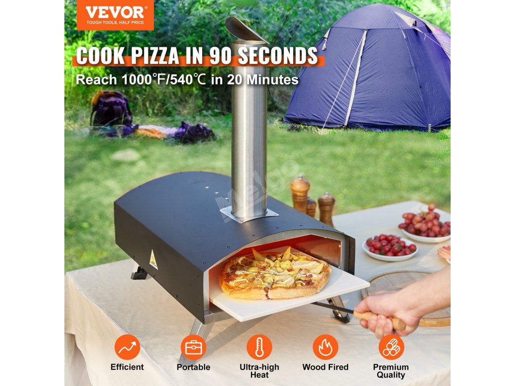 Táto konštrukcia vonkajšej pece VEVOR umožňuje rýchle varenie, pričom dosiahne teplotu až 1000 °F len za 30 minút. Dvanásťpalcovú pizzu môžete upiecť za 90 sekúnd alebo menej. Jej rýchly ohrev zaisťuje rovnomerné pečenie, čím sa zachovávajú chute pri rušných stretnutiach pod holým nebom. Podávajte chutné jedlo bez dlhého čakania. Vychutnajte si dokonale upečenú pizzu za okamih vďaka rýchlemu ohrevu, ktorý ju odlišuje od iných pecí.
