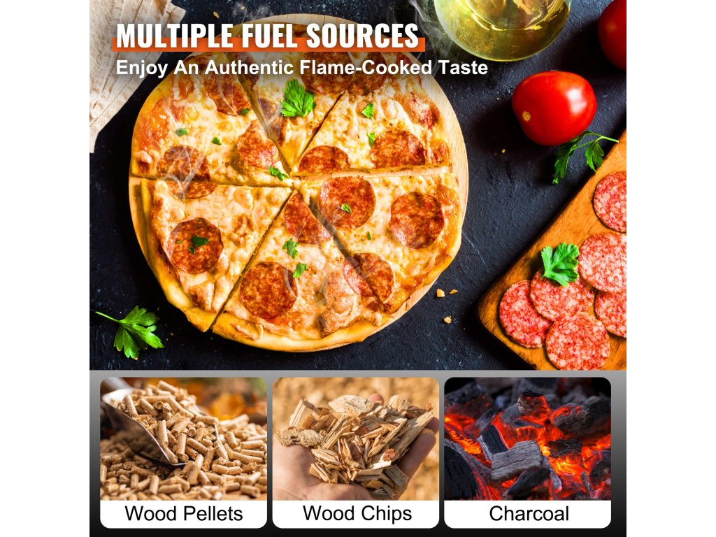 Táto 12-palcová pec na pelety je veľmi všestranná a ako palivo podporuje drevené pelety, drevnú štiepku alebo drevené uhlie. Vyberte si drevo pre autentickú chuť alebo drevené uhlie pre pomalé varenie. Jej veľký zásobník na palivo s hmotnosťou 480 gramov minimalizuje dopĺňanie paliva, čo umožňuje dlhšie a neprerušované varenie. Vďaka tejto flexibilite je ideálny na kempovanie alebo stretnutia na dvore, pretože vám zaručí, že vždy budete mať k dispozícii palivo podľa svojich potrieb.