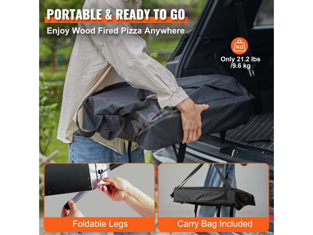 Tento prenosný gril na pizzu váži len 21,2 l a obsahuje skladacie nohy, vďaka čomu sa jednoducho prenáša. Môžete ho používať na záhrade, v kempe alebo na pláži. Jeho súčasťou je taška na prenášanie a lopata na drevené pelety pre väčšie pohodlie, čo z neho robí vynikajúcu voľbu na varenie na cestách. Vychutnajte si varenie v prírode, kamkoľvek pôjdete, s týmto ľahkým, prenosným dizajnom.