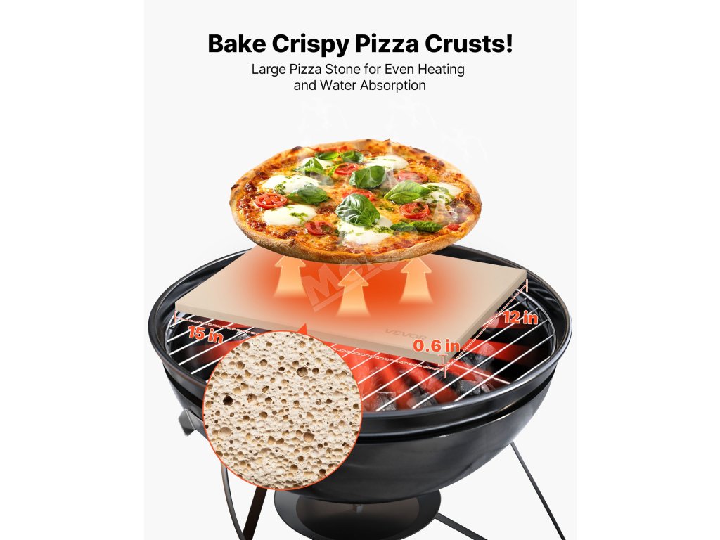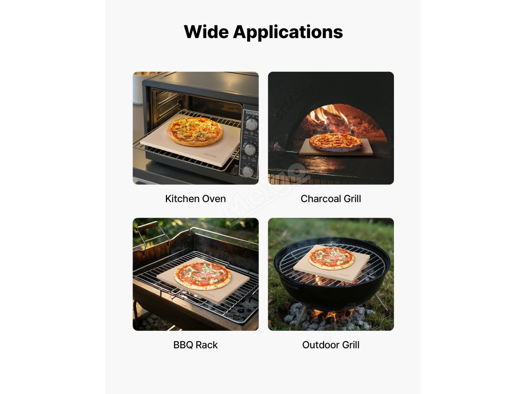 Tento velký pečicí kámen můžete použít k přípravě pizzy, chleba, sušenek a dalších pochoutek nebo k ohřívání pokrmů pro obnovení jejich křupavé struktury. Ať už v domácí kuchyni nebo při venkovním grilování, vše bude díky němu chutnější!