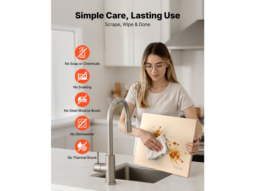 Tento obdélníkový pečicí kámen, který se snadno používá a vyžaduje jen několik kroků, vyžaduje po použití pouze vodu na čištění a rychle schne, takže se snadno skladuje a snadno udržuje.