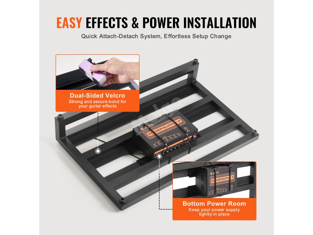 Objevte sílu našeho vysoce kvalitního suchého zipu pro pevné uchycení , který lze libovolně rozložit. Spodní část našeho pedálového boardu obsahuje speciální přihrádku na napájení, kterou snadno zajistíte pomocí popruhů pro větší pohodlí.