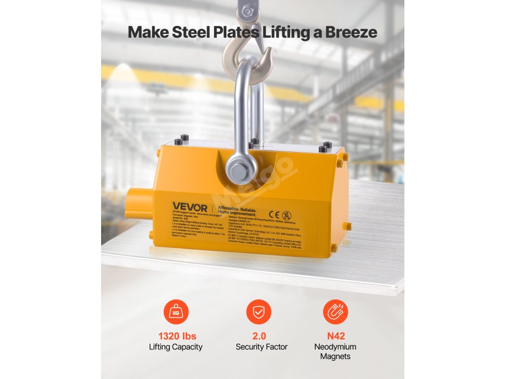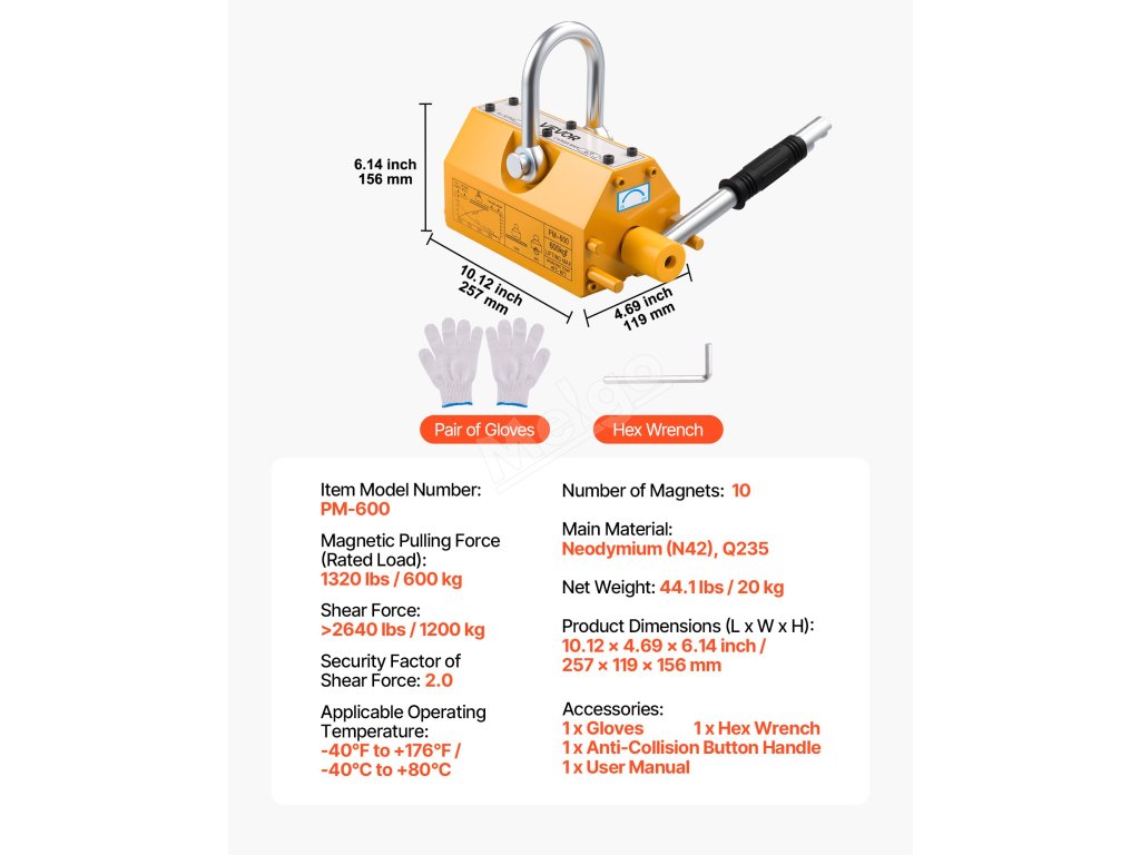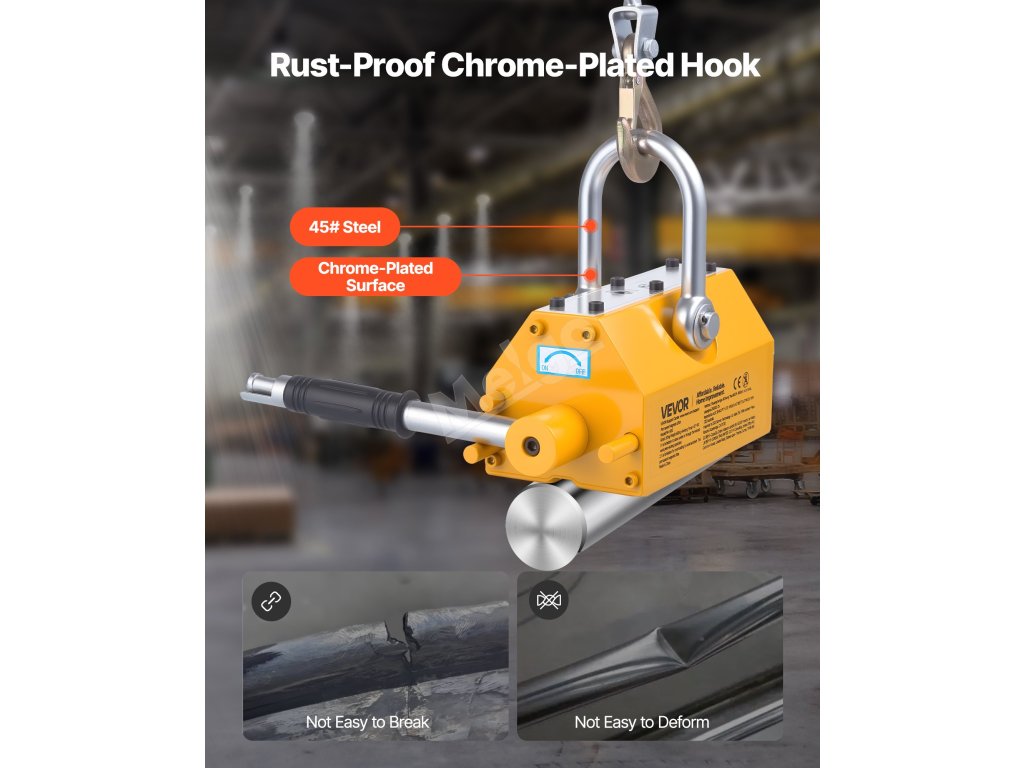 Tento magnetický zvedák je vyroben s výkonným neodymovým magnetem N42, který umožňuje zvedat ocelové materiály na místě bez jakéhokoli napájení. Připravte se na zvýšení efektivity manipulace s ocelí pomocí našeho zvedacího magnetu!