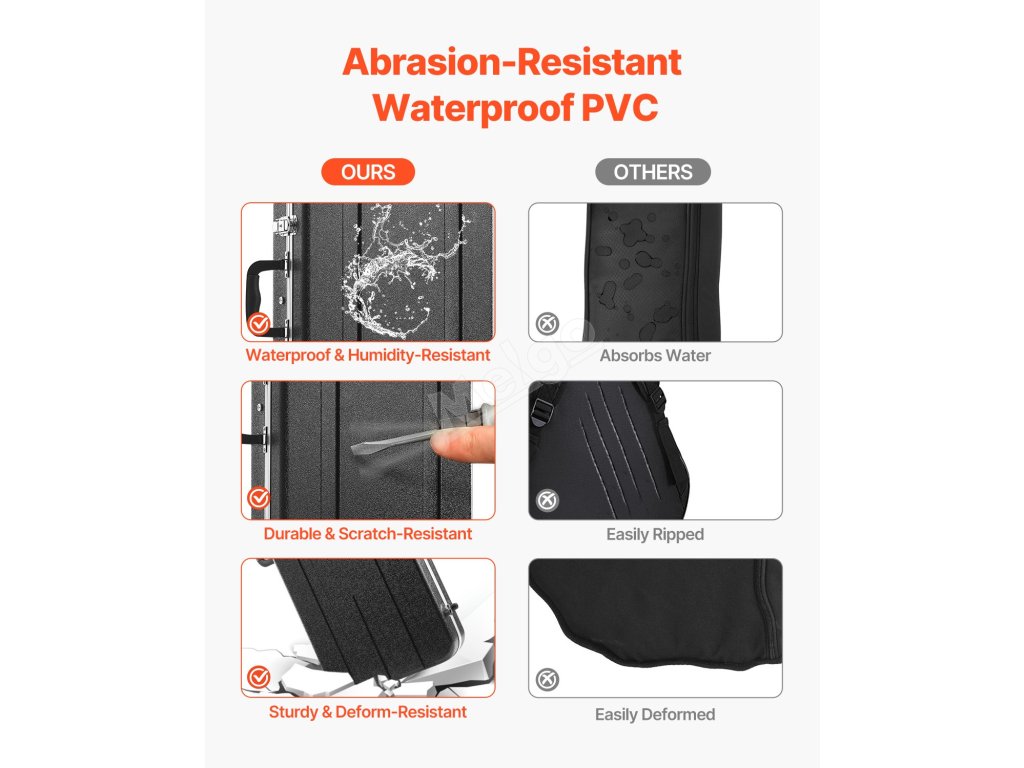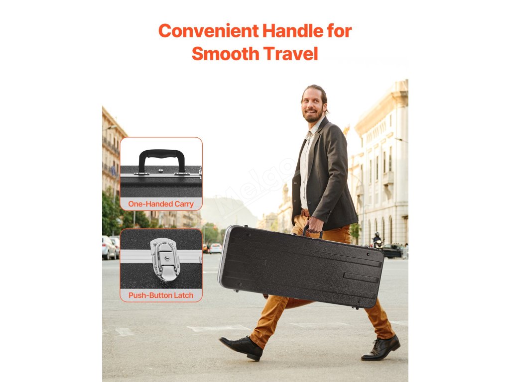 Tento obdélníkový pevný kytarový kufr s vnější povrchovou úpravou ABS je vodotěsný a odolný proti vlhkosti, takže chrání vaši kytaru před vlhkostí a vlivy prostředí. Ať už svítí ostré slunce nebo hustě prší, můžete ji bez obav přenášet a hrát na ni.