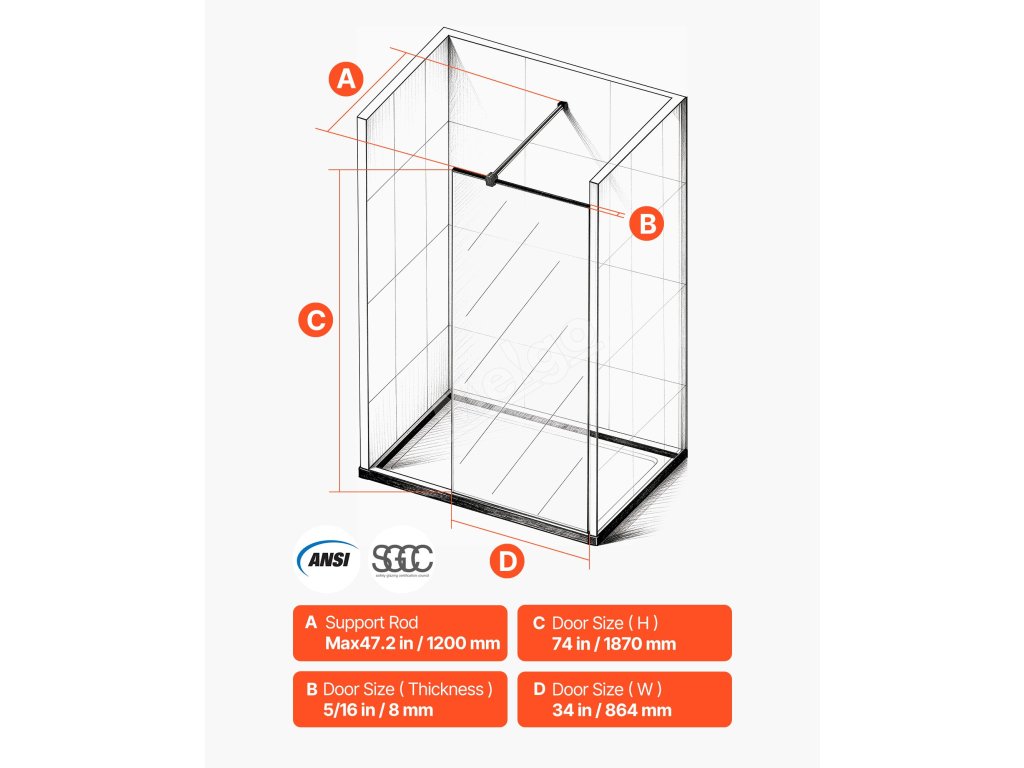 | Velikost dveří (š x v x h) | 34 x 73,6 x 5/16 palce / 864 x 1870 x 8 mm |