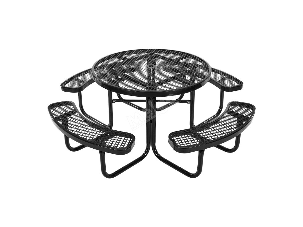 Piknikový stůl s lavicemi 46" kulatý, lakovaná ocel, otvor na deštník