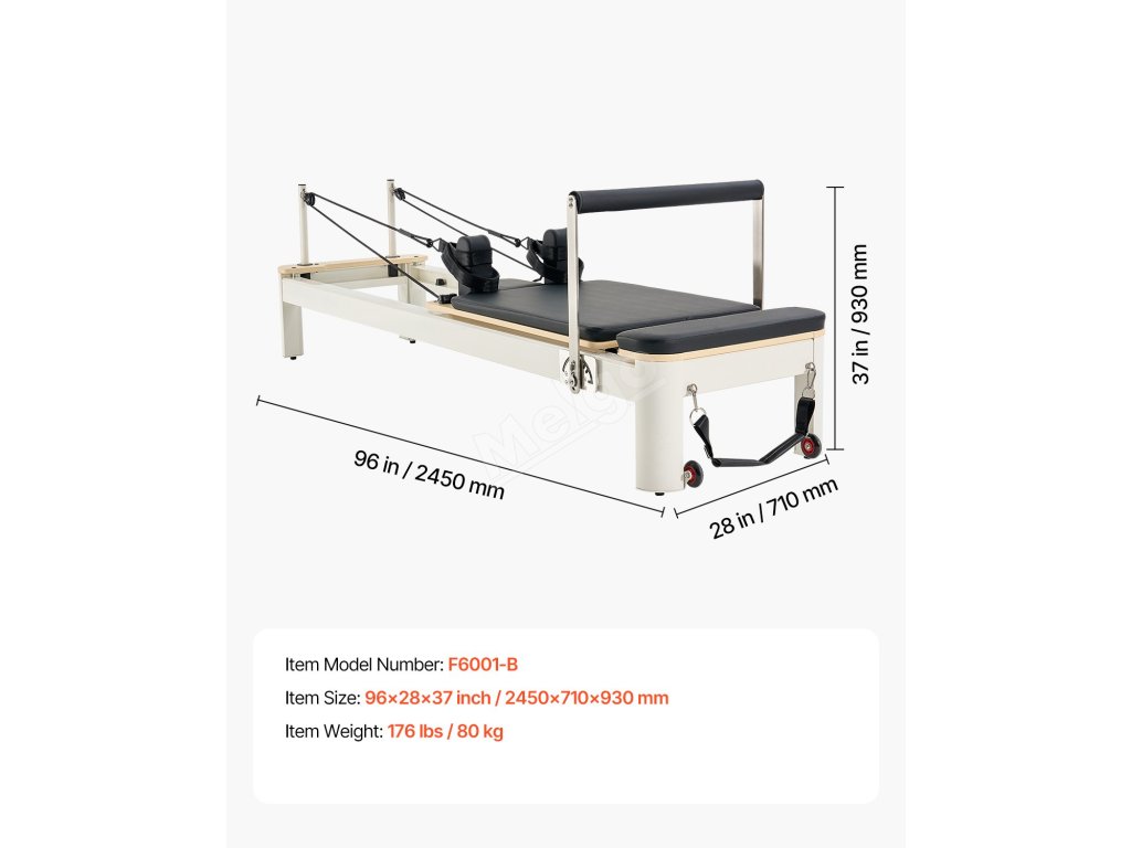 Tento pilates reformer je vyroben z pevného rámu z hliníkové slitiny a nabízí vynikající odolnost. Materiál zaručuje dlouhodobý výkon a stabilitu.