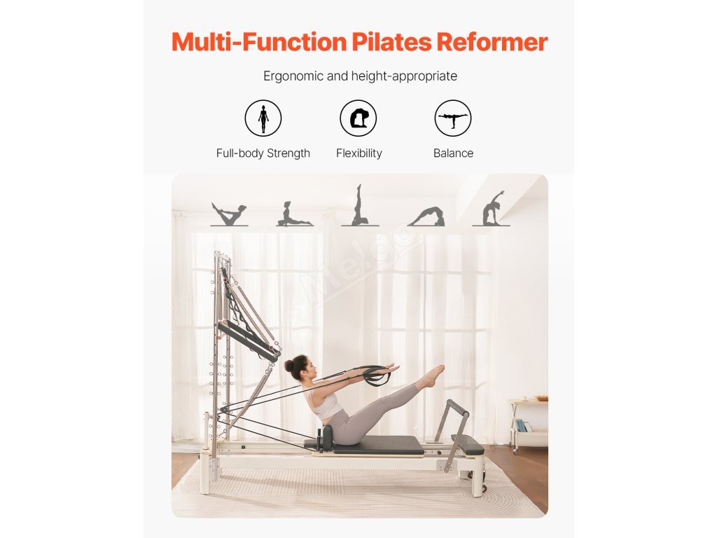 Tento multifunkční pilates stroj 2 v 1 je navržen tak, aby byl ergonomický a výškově nastavitelný, takže je ideální pro různá cvičení. Poskytne vám pohodlí pro efektivní a účinné cvičení.