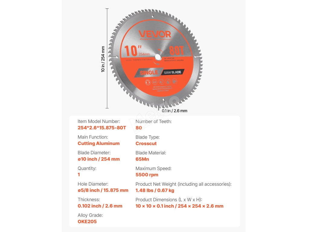 | Číslo modelu položky | 254*2.6*15.875-80T |