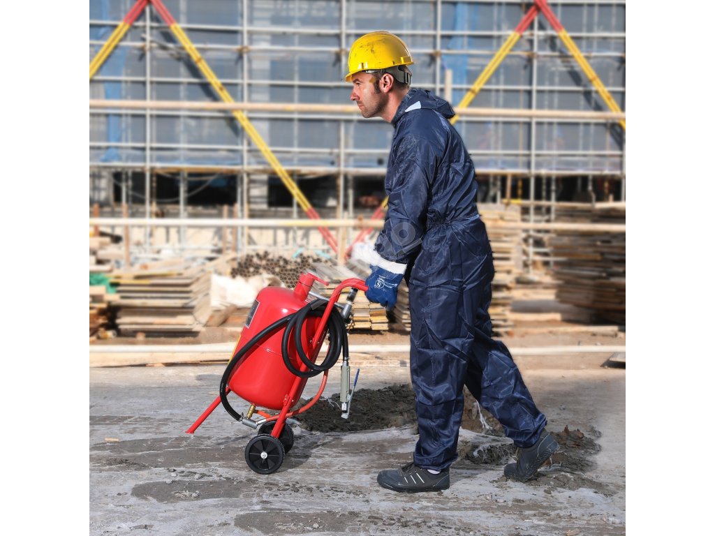 Díky pogumovaným kolečkům a pogumované rukojeti se snadno přemisťuje, což je vhodné zejména pro velkou souvislou práci. Díky 8stopé gumové hadici se snadno dostanete do těžko přístupných míst. Spodní podpěra zajišťuje vysokou stabilitu, což usnadňuje provádění pískovacích prací.