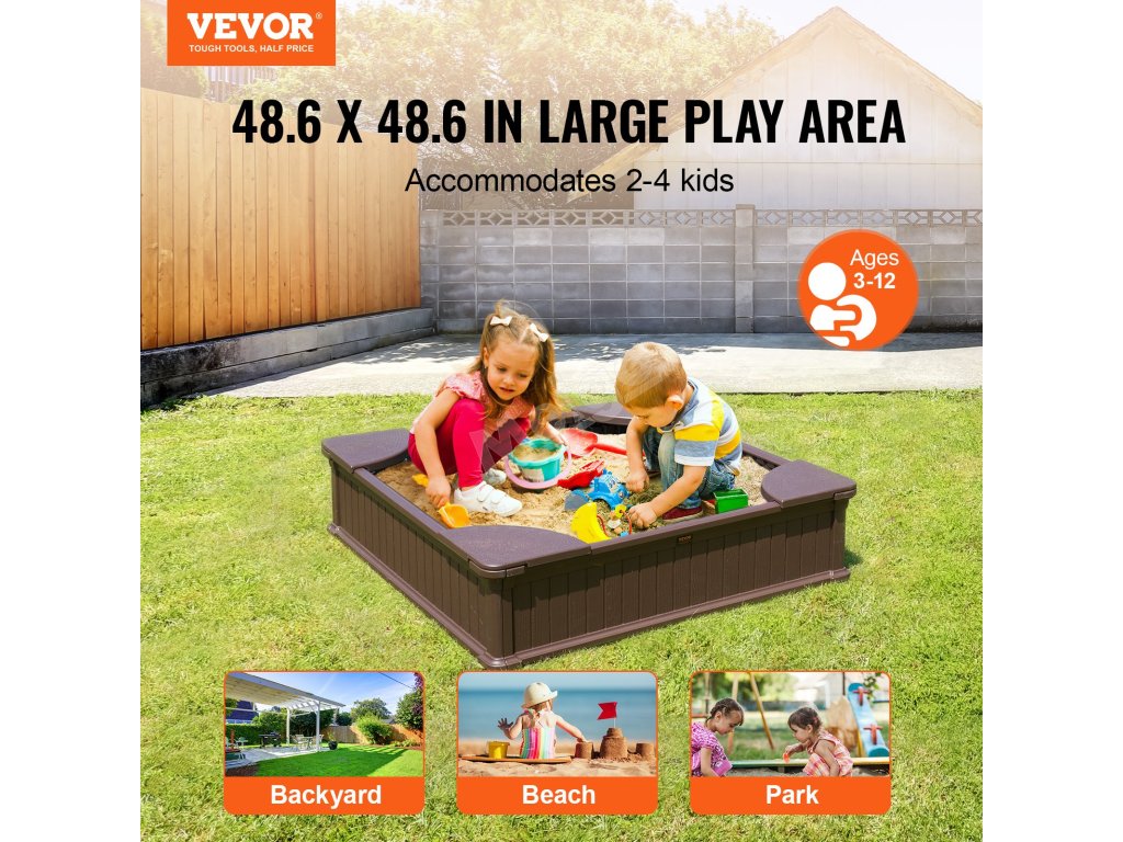 Na pískovišti o rozměrech 48,6 x 48,6 si mohou hrát 2-4 děti ve věku 3-12 let současně. Tato prostorná konstrukce promění váš dvorek v mini hřiště, posílí interakci, spolupráci a sociální dovednosti dětí a podpoří týmovou spolupráci a komunikaci.