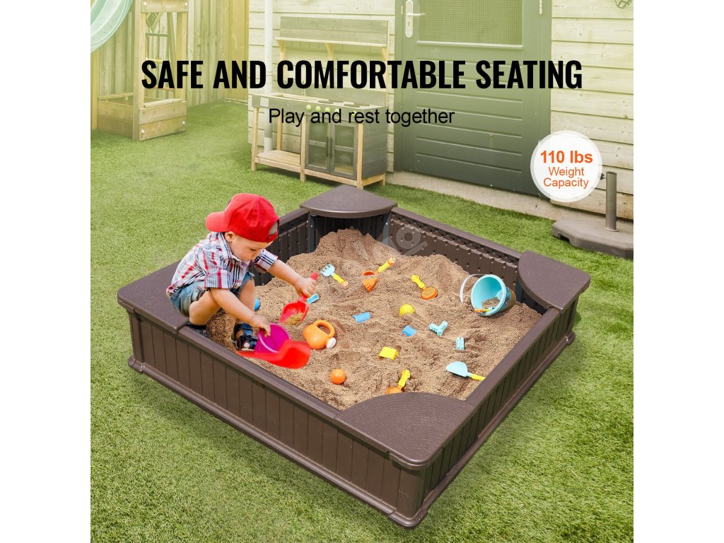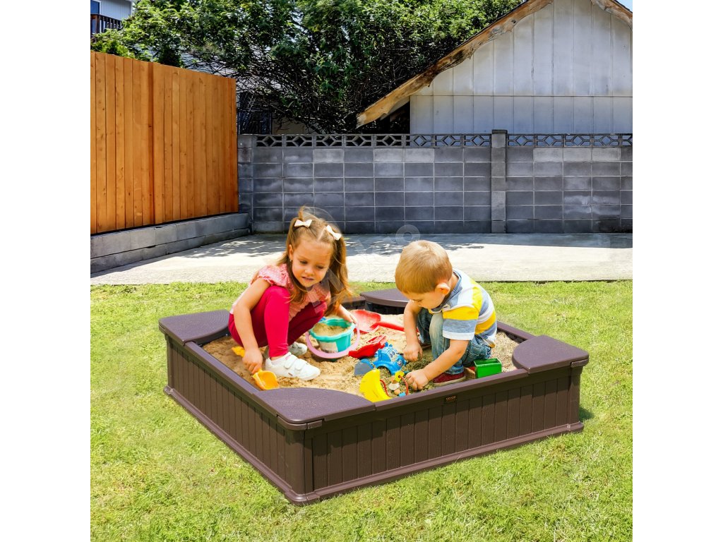 Pískoviště s krytem je vybaveno 4 rohovými sedátky, kde si děti mohou odpočinout, když jsou unavené, a nesedí tak přímo na písku, což jim poskytuje čistší a pohodlnější zážitek. Každé sedátko unese až 110 kg a poskytuje dětem bezpečné a pohodlné prostředí pro hraní.