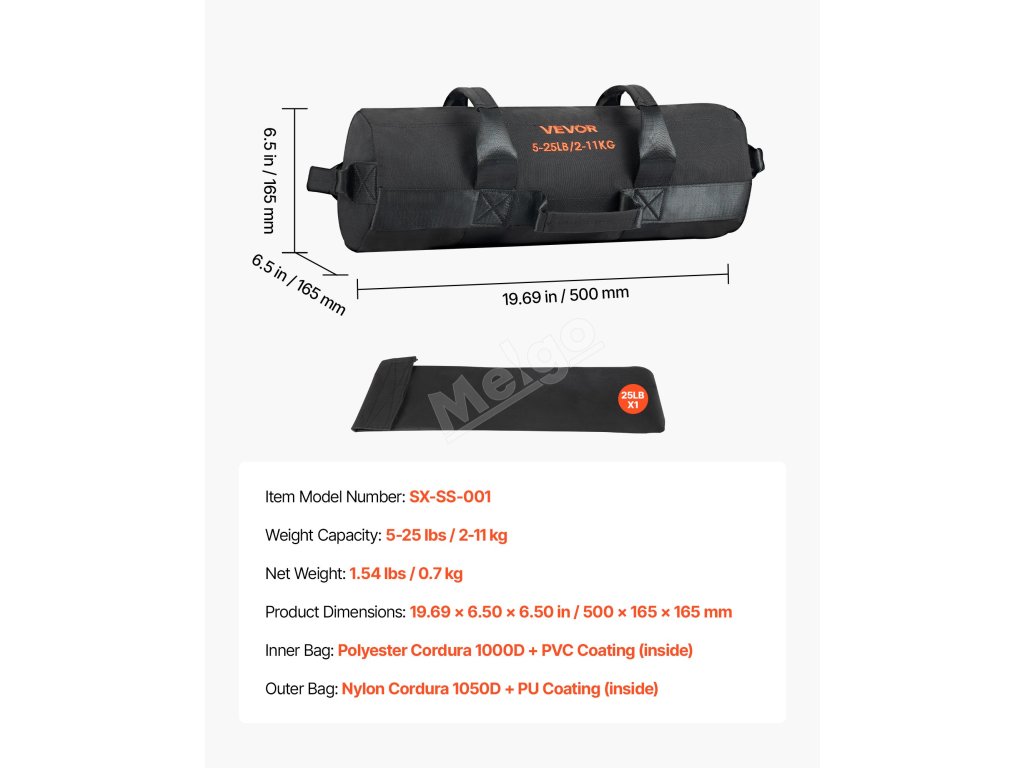 Tento těžký cvičební pytel s pískem je tréninkový nástroj. Vnitřní kapsa je vyrobena z polyesteru Cordura 1000D s povrchovou úpravou PVC a vnější kapsa je vyrobena z nylonu Cordura 1050D. Vak je vyroben z vysoce kvalitních materiálů a má pokročilé těsnění, je odolný, nepromokavý a odolný proti písku, ideální pro všestranný trénink.
