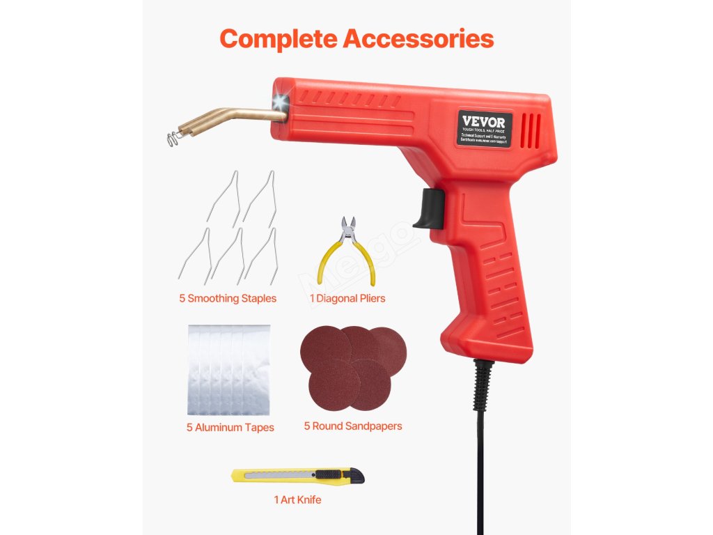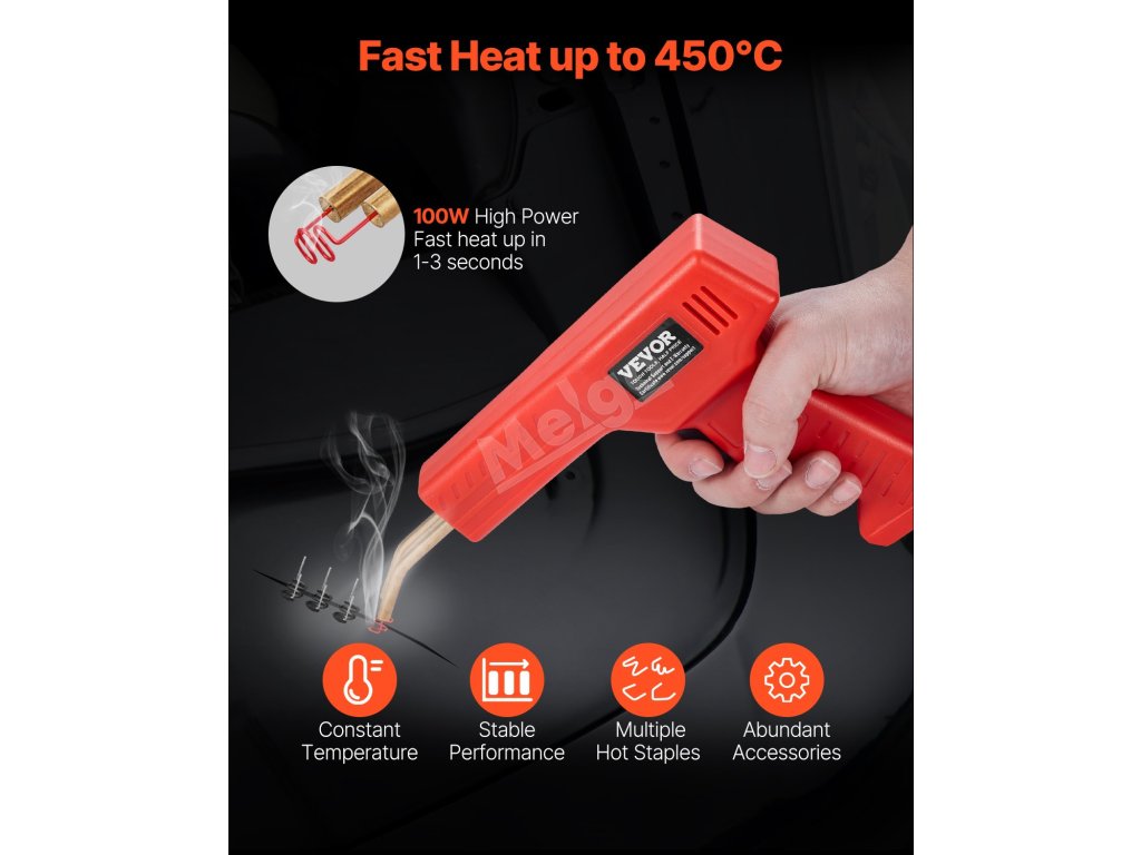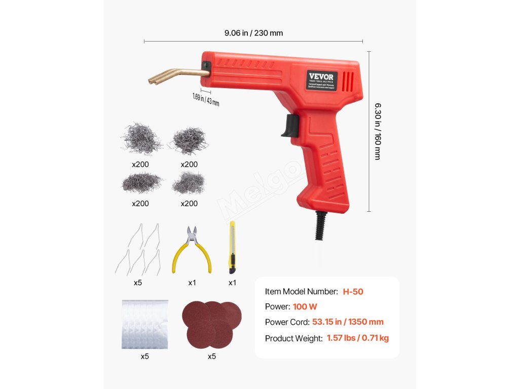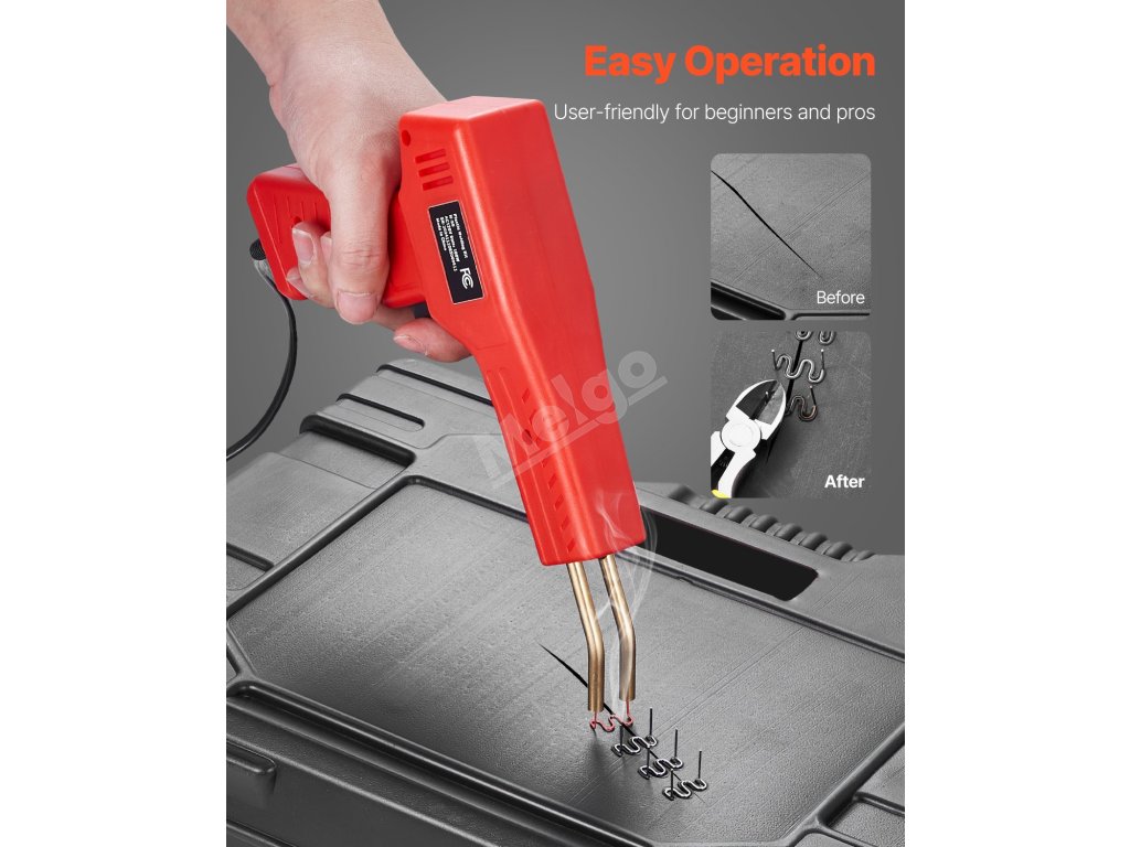 S naší 100W svářečkou plastů snadno opravíte plastové předměty! Díky rychlému zahřívání, 800 kusům 4 typů horkých spon, kompletní sadě příslušenství a vestavěnému LED světlu tato svářečka horkých spon bez námahy splní vaše požadavky na opravu plastů, ideální pro různé scénáře oprav plastů!