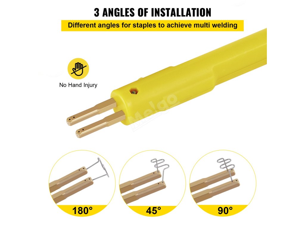 Tyč drží sponku pod úhlem 45°, 90° nebo 180° pro svařování pod různými úhly. Díky tomu lze svařovat a opravovat plastové díly ve více směrech, například praskliny, zlomy, vnitřní a vnější rohy a mnoho dalších.