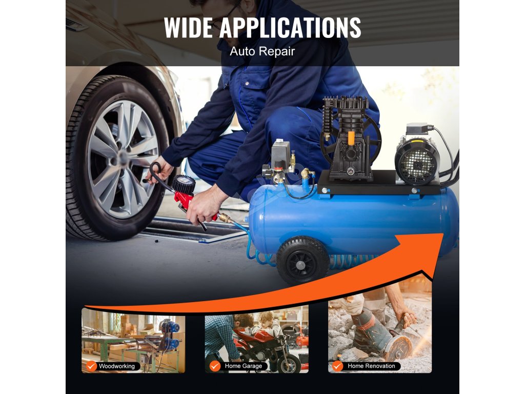 Toto dvouválcové vzduchové kompresorové čerpadlo má široké využití při opravách automobilů, v truhlářských dílnách, domácích garážích, při renovacích atd. Zajišťuje spolehlivou dodávku vzduchu pro splnění různých potřeb nafukování a zvýšení efektivity práce.