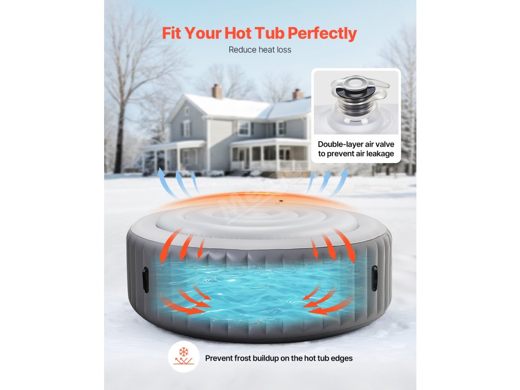 Tento nafukovací okrúhly kryt na vírivku má silné tesnenie, účinne zabraňuje úniku tepla a tiež znižuje kondenzáciu a zabraňuje zamrznutiu okrajov, čo vám umožní rýchlo si vychutnať teplú kúpeľ.