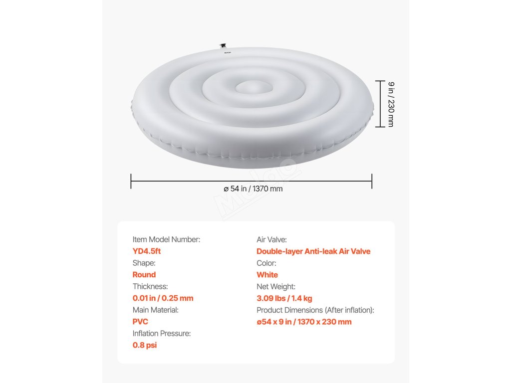 | Rozmery po nafúknutí | ∅54 x 9 in / 1370 x 230 mm |
