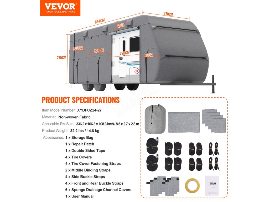 | Použitelná velikost RV | 336.2 x 106,3 x 108,3 palce / 8,5 x 2,7 x 2,8 m |