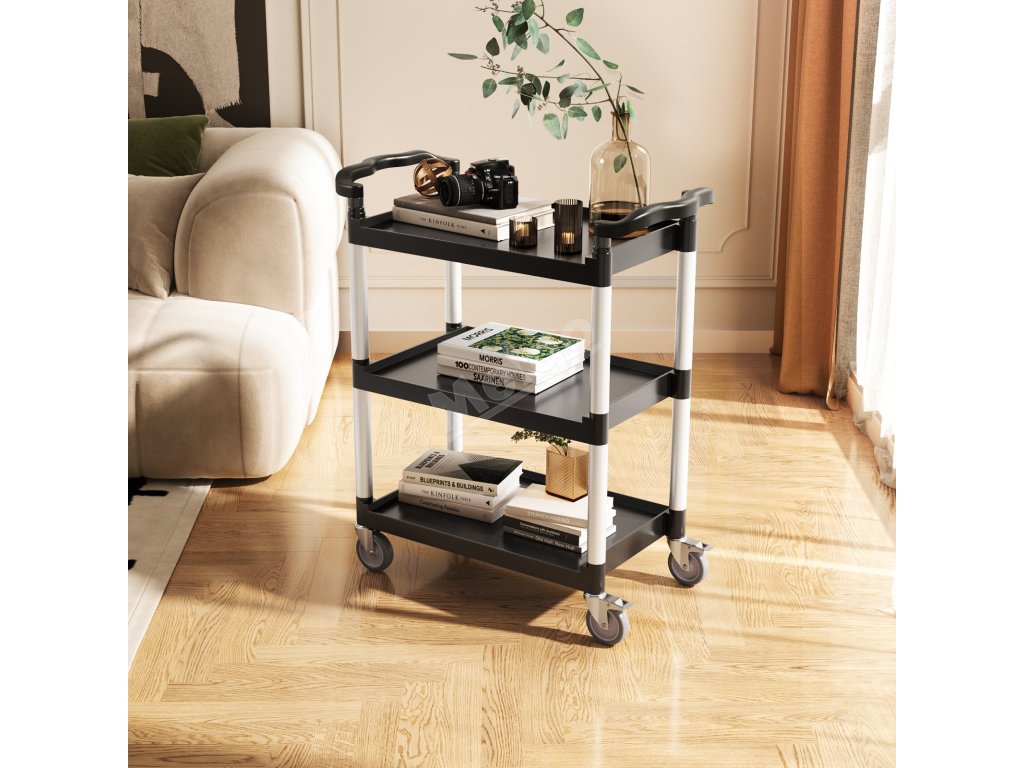 Ergonomické rukojeti umožňují snadné manévrování a jsou ideální pro dlouhodobé používání. Tento užitkový plastový vozík je odolný proti vodě, rzi a korozi, snadno se čistí pouze vlhkým hadříkem a rychle se sestavuje.
