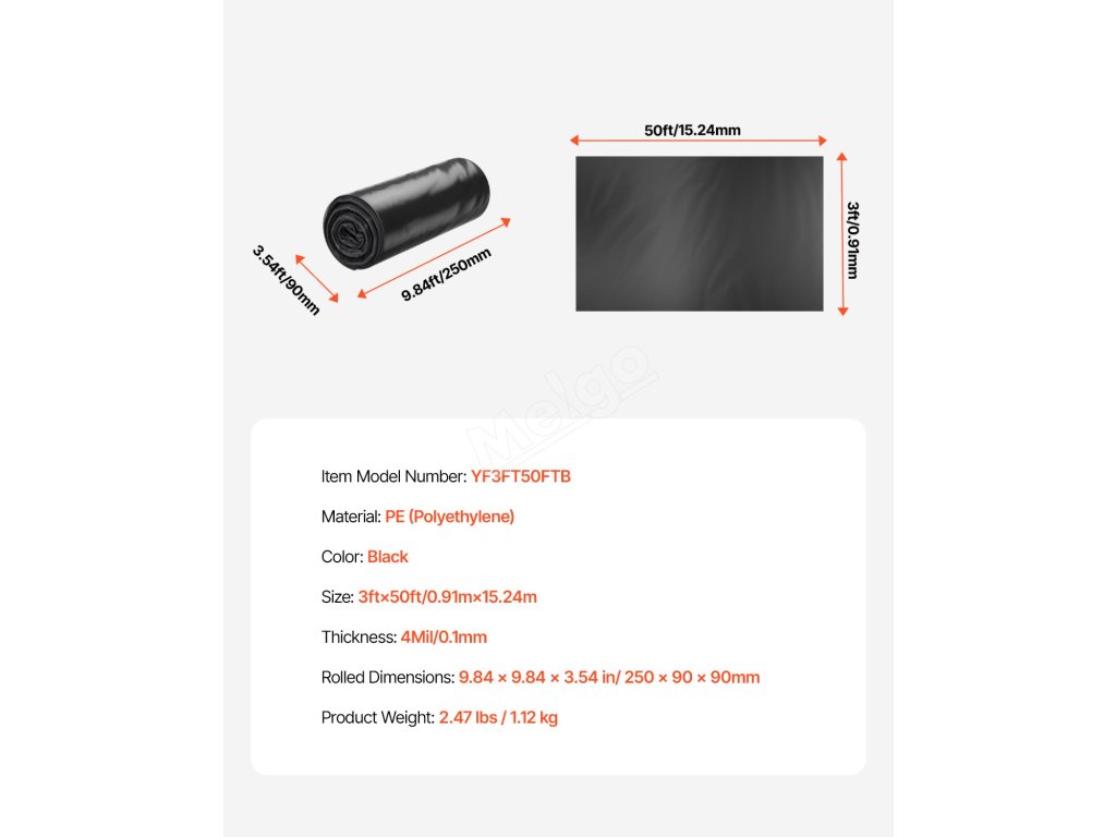 Plastová fólie 3FT×50FT, tloušťka 4 mil., černá, polyethylenová