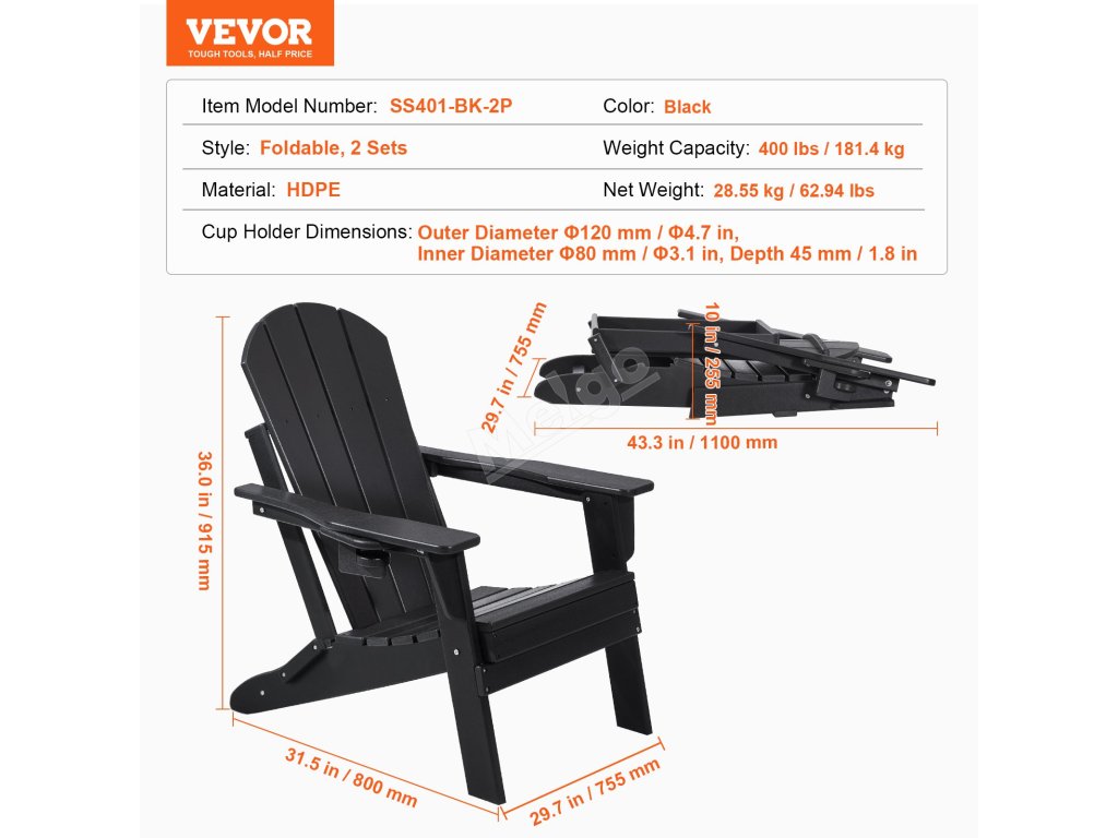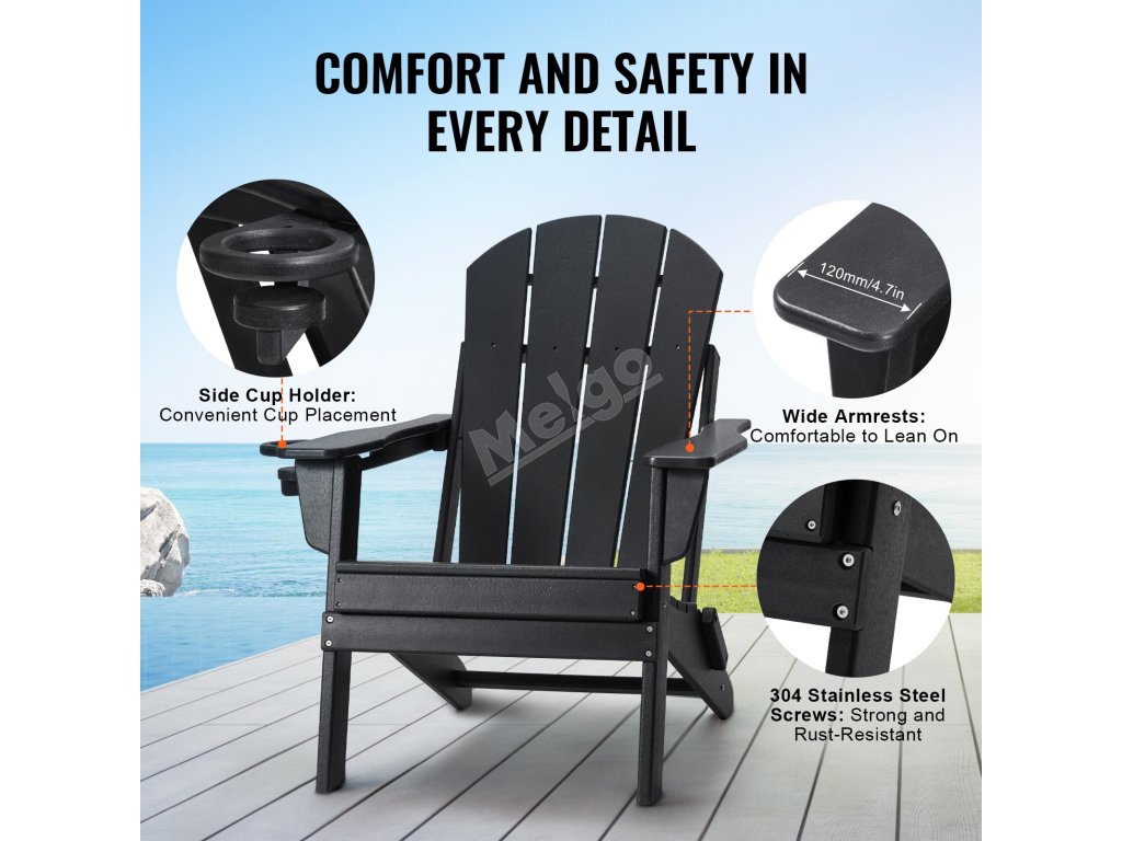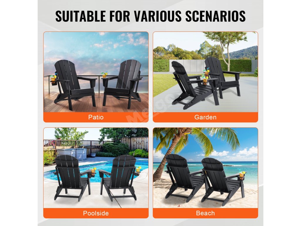 Plastové adirondack židle, sada 2, černé, s držákem na sklenici
