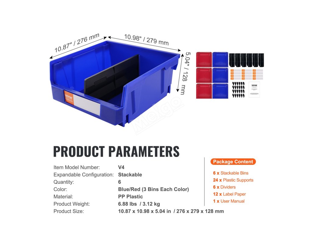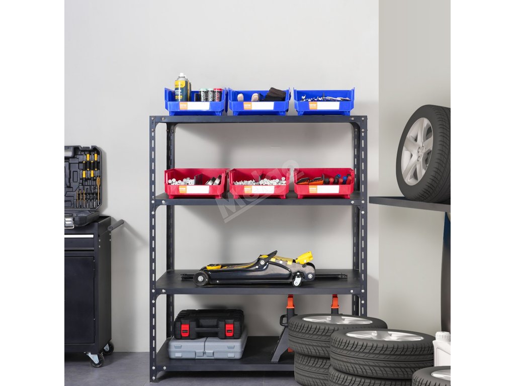 Naše zásobníky dílů jsou dodávány se zesílenými plastovými podpěrami pro efektivní stohování. Díky červeným a modrým zásobníkům a přiloženému papírovému štítku snadno rozlišíte obsah každého zásobníku.