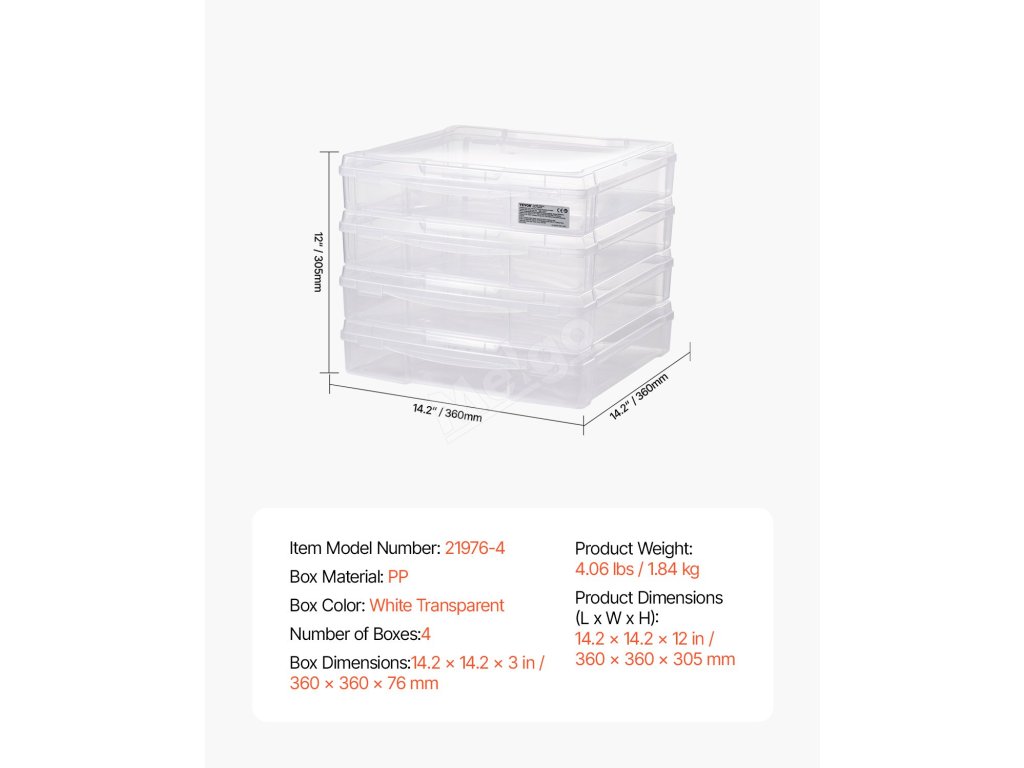 Plastové boxy na scrapbook papír, 4 ks, stohovatelné, průhledné