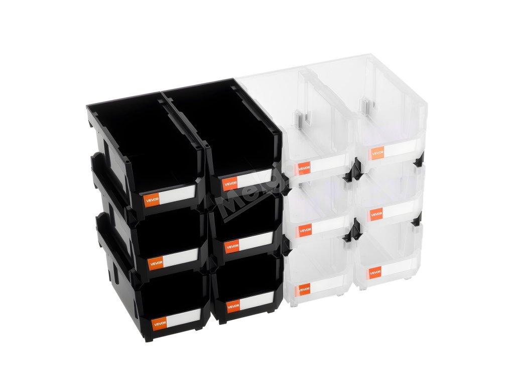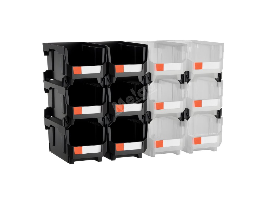 Plastové stohovatelné úložné boxy 12× 37.7×21.5×18 cm černé/průhledné