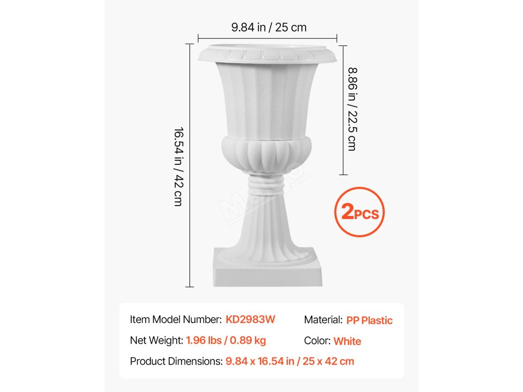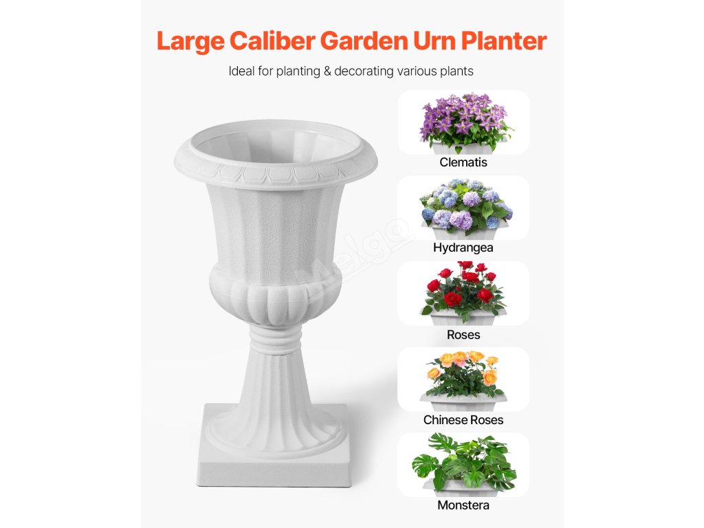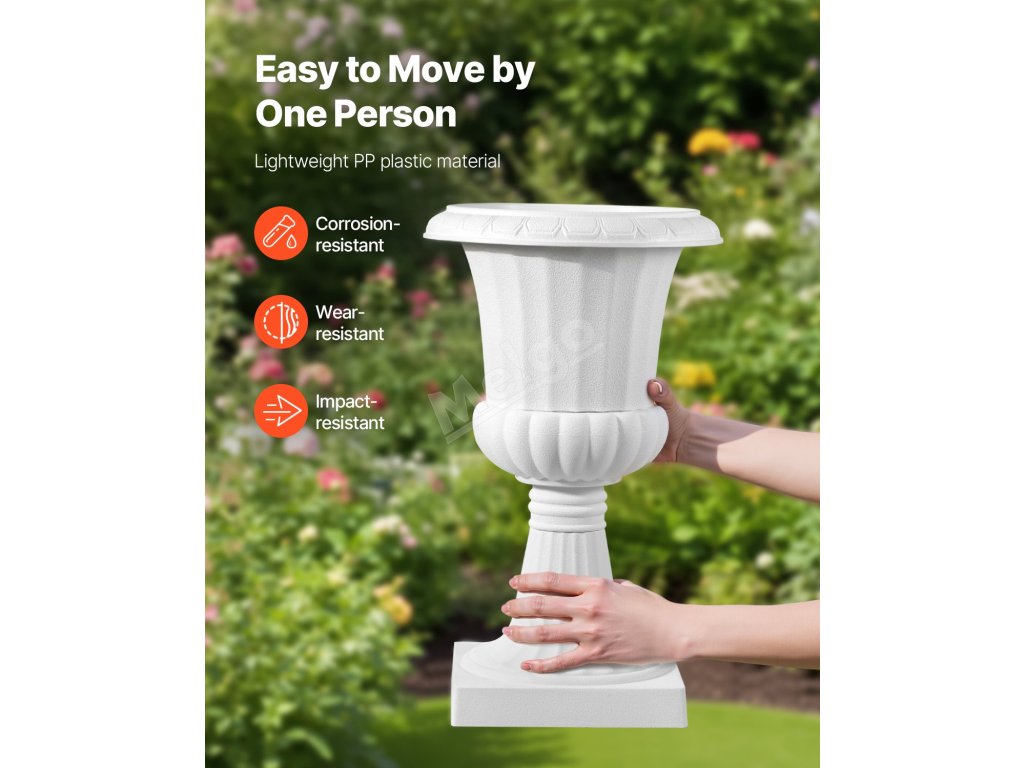 Tento květináč na podstavci je vyroben z vysoce kvalitních materiálů, je lehký, odolný proti prasknutí a navržen tak, aby odolal nepříznivým povětrnostním podmínkám. Ať už svítí slunce, nebo prší, zůstane ve skvělé kondici po dlouhá léta.