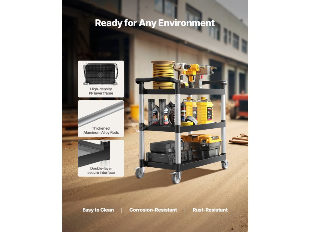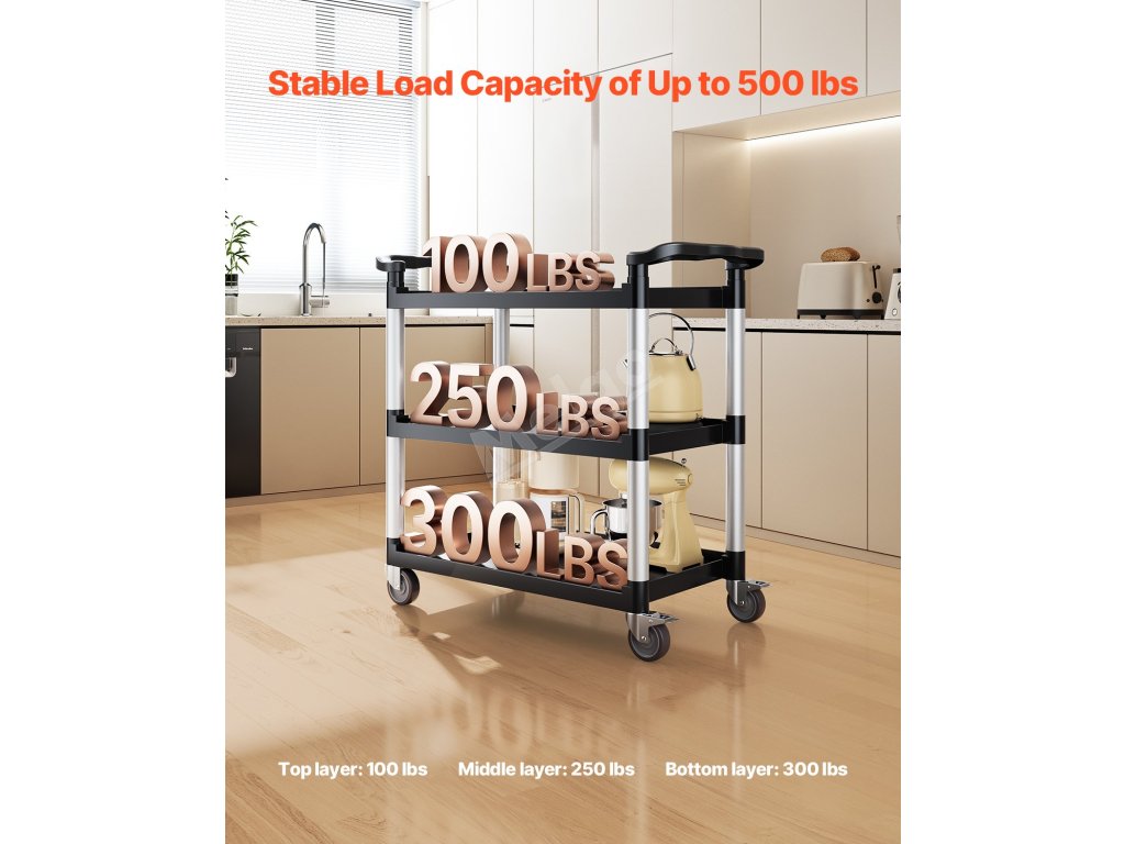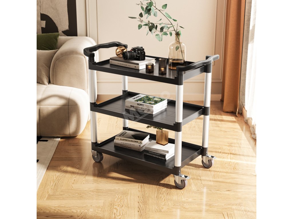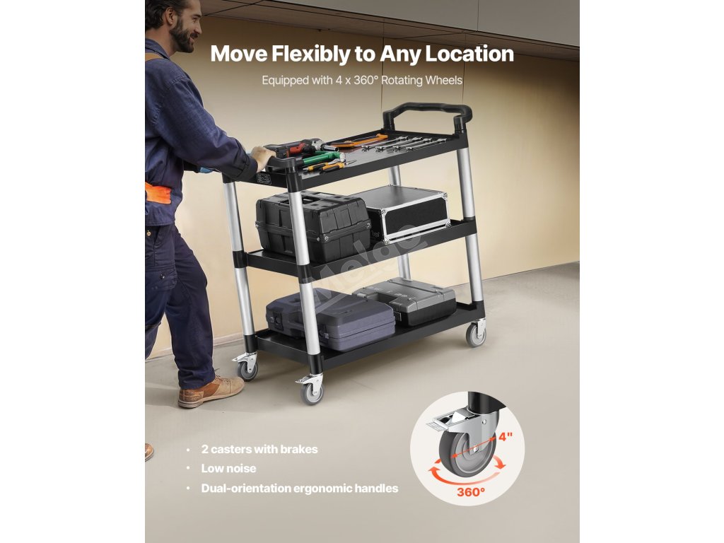Plastový 3-podlažní vozík 500 lbs 360° kolečka 2 s brzdou, 31.1×19.3"
